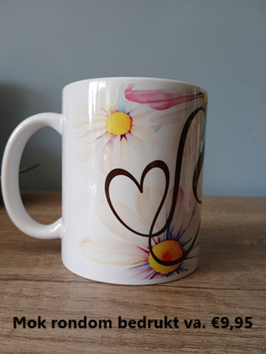 •Mok dubbelzijdig of rondom bedrukt va. €9,95